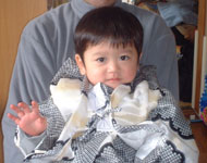元旦、お宮参りのために購入した着物(?)を久しぶりに息子に着せてみる。